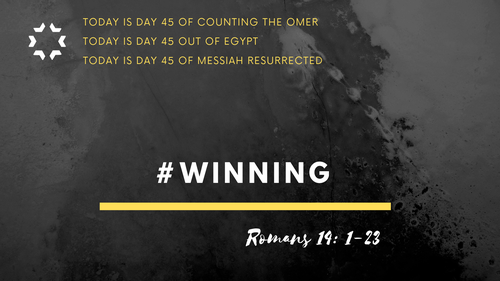 17 for the kingdom of God is not about eating and drinking, but righteousness and shalom and joy in the Ruach ha-Kodesh.
