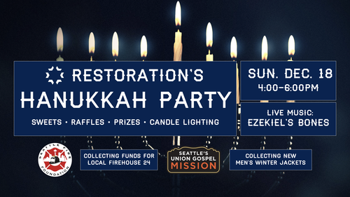 Tell your friends, bring your friends, this Hanukkah party is going to be lit (see what we did there)! Join us on Sunday, December 18 @4:00pm-6:00pm for sweets, raffles, prizes, candle lighting, and live music from Ezekiel's Bones!